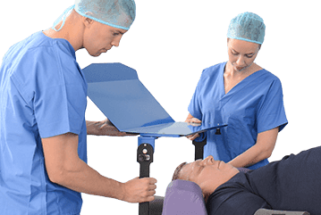 “I’m happy to recommend FaceGuard to my customers. The legs of the frame can be adjusted to fit wider OR tables and they can be clamped to the accessory rail toward anesthesia or toward the patient’s chest, because the tray slides forward and back. No other head shield device is as versatile!”